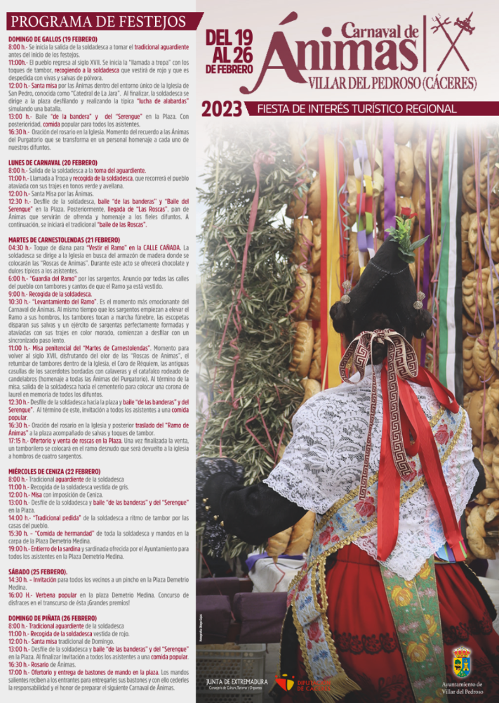 CARNAVAL DE ÁNIMAS 2023 08 febrero 2023 Fiesta de interés turístico regional. Galería imágenes Documentos PROGRAMACIÓN CARNAVAL DE ÁNIMAS 2023 (1).pdf (pdf 1,3 MB)